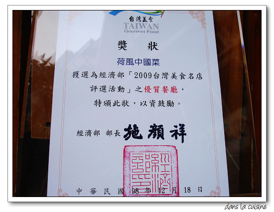 「荷風中國菜」剛開業時,我因地利之便常來,當時店面很小,