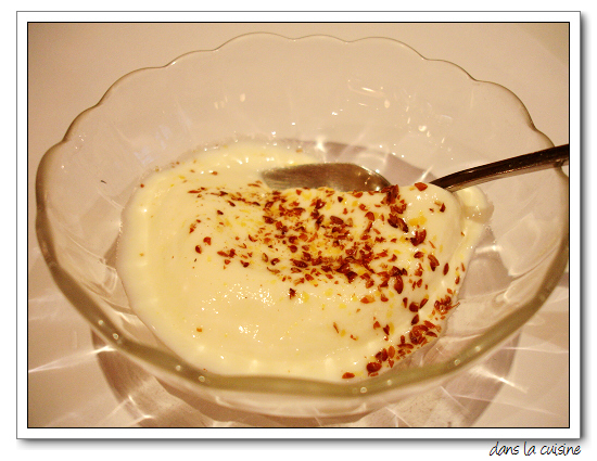 ↓ 飯後招待的荷風自製 yogurt + 亞麻仁籽:yogurt 微甜,