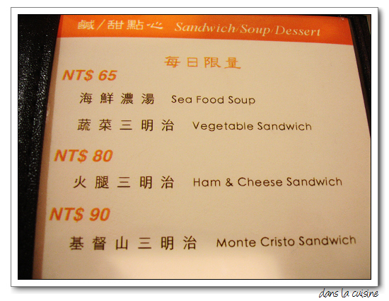 ↓ 基督山三明治:NT$90,熱食,有三片白吐司。