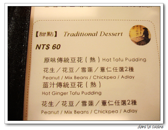 ↓ 熱豆花:NT$60,可選兩種配料。夏天的冰豆花會放剉冰。