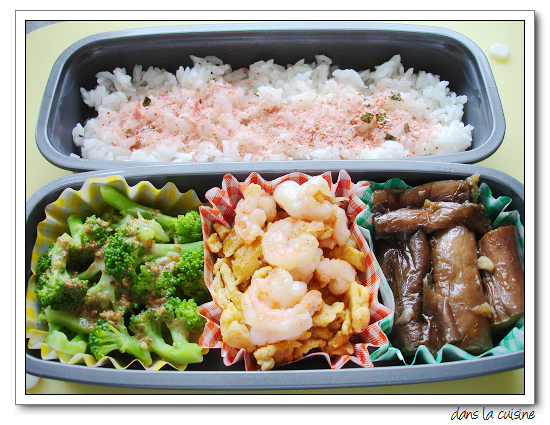 ↓ 2010.04.29.:燙青花菜佐焙煎胡麻醬+滑蛋蝦仁+塔香茄子