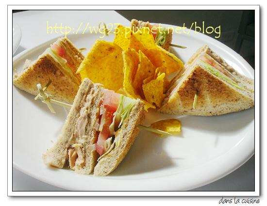 ↓鮪魚三明治:NT$120,當然也好吃。中間的玉米脆片也新鮮,