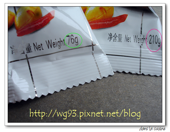 ↓ 價格:小包(左)RMB5.9+大包(右)RMB16.0,每公克價錢差不多。