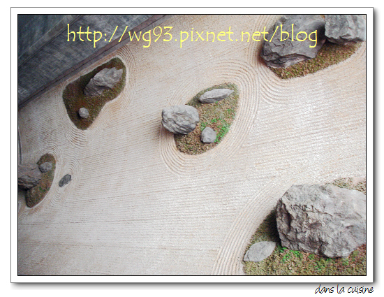 ↓ 圓弧形的牆面上仿造龍安寺的石亭造景,恰好前一天才去龍安寺,