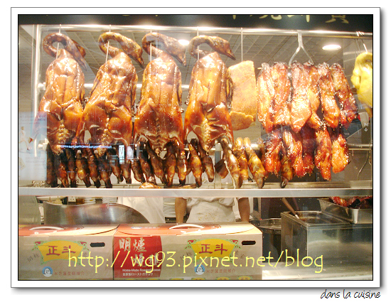 ↓ 連頭帶尾的燒鴨一隻一隻吊起來,應該是全世界的國際機場中
