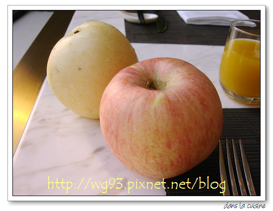 ↓ 蘋果和水梨好像來自山東,水梨多汁香甜,非常好吃。