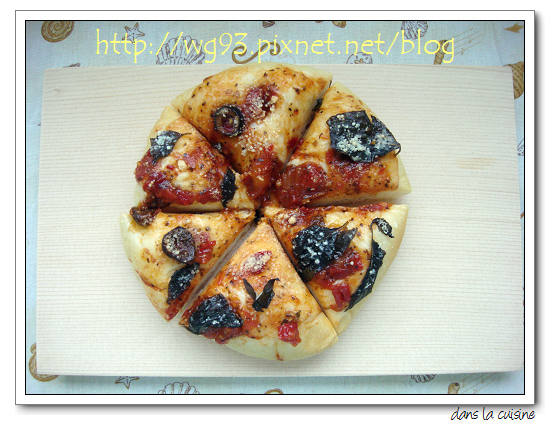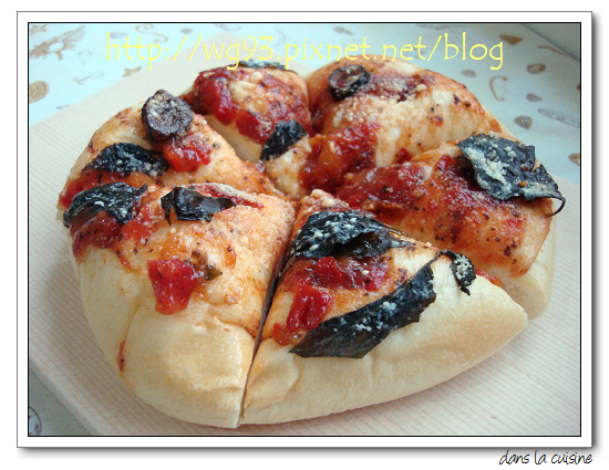 ),這款麵包還加了黑橄欖。番茄醬甜甜的,整體味道還不差。