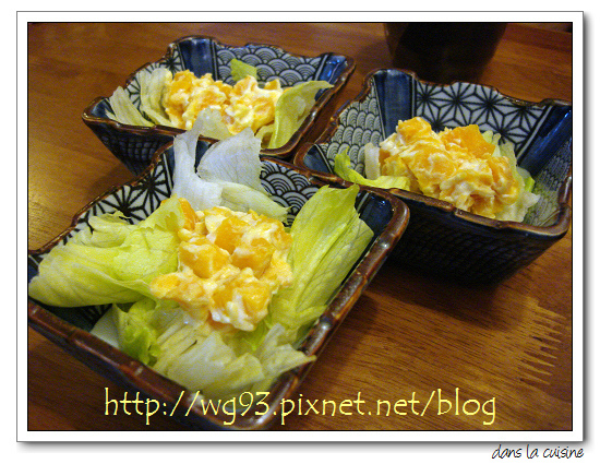 $600套餐的前菜之一是(1)地瓜沙拉,蒸熟的地瓜切丁佐美乃滋。