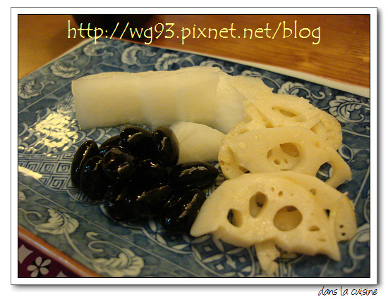 ↓ 前菜之二是(2)漬物:白蘿蔔醃漬的微酸微甜很開胃,纖維細緻口感