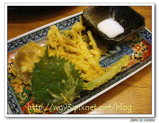 ↓ (4) 蔬菜天婦羅:以鹽巴取代傳統的甜醬油加蘿蔔泥當做蘸醬。