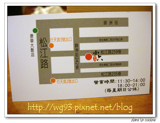 ADD:台北市松江路259巷8號 (捷運 行天宮站 3號出口)